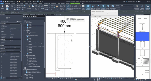 Change management: When geometry or rebar changes, all related views and schedules update together.